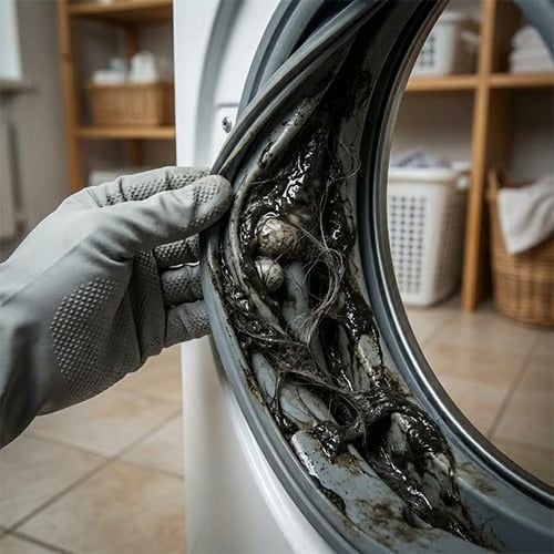 The low-temperature washing cycles most of us use (30-40°C) combined with liquid detergents create a sticky, glue-like layer called Bio-Film on the hidden parts of your machine. This gunk traps bacteria, mold, and even fecal matter residue in areas you can't reach or see.
