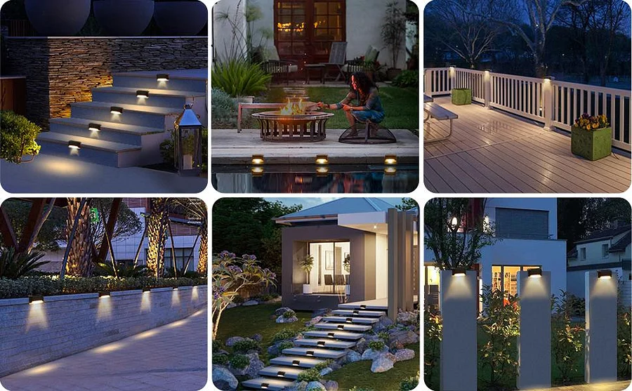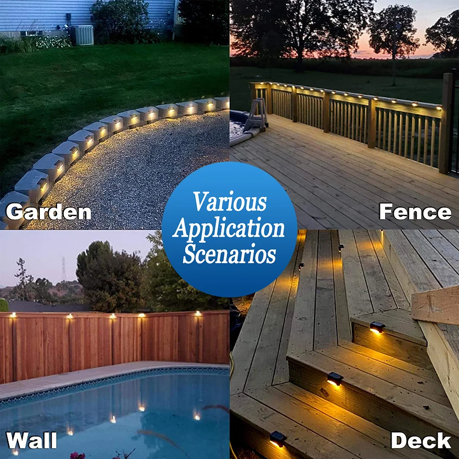 Outdoor solar deck lights for daily lighting and decoration. Creates a nice ambiance for your backyard, patio, stair, deck, fence, garden, porch, pathway, etc.